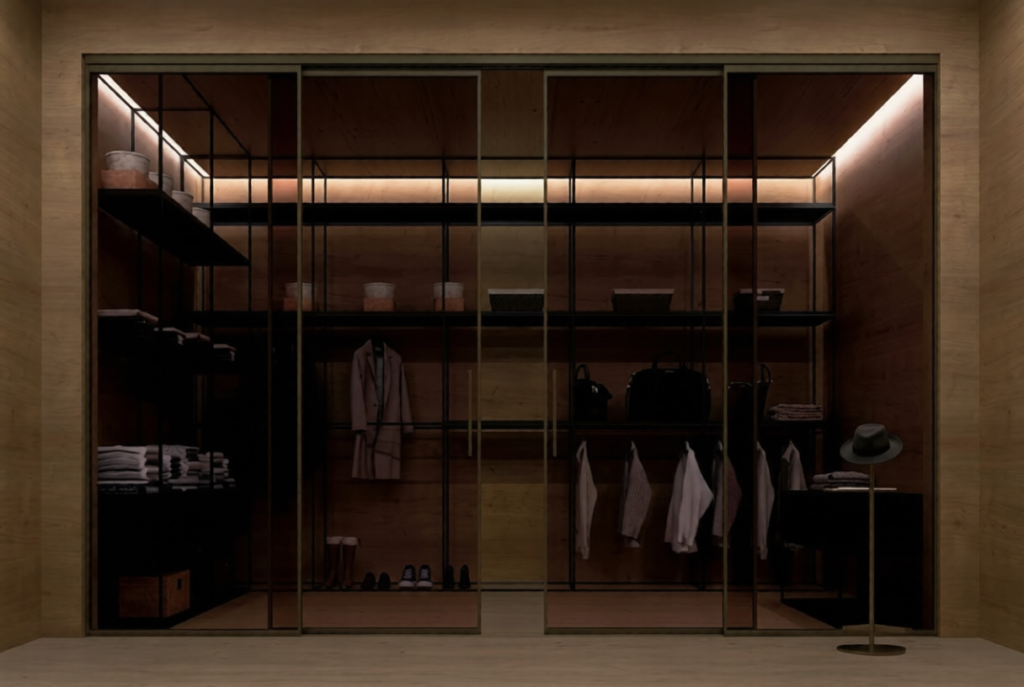 | Swing Door | A lightweight yet strong hinged door with a minimal 16 mm frame. No bottom rail is required, maintaining a clean floor look. |